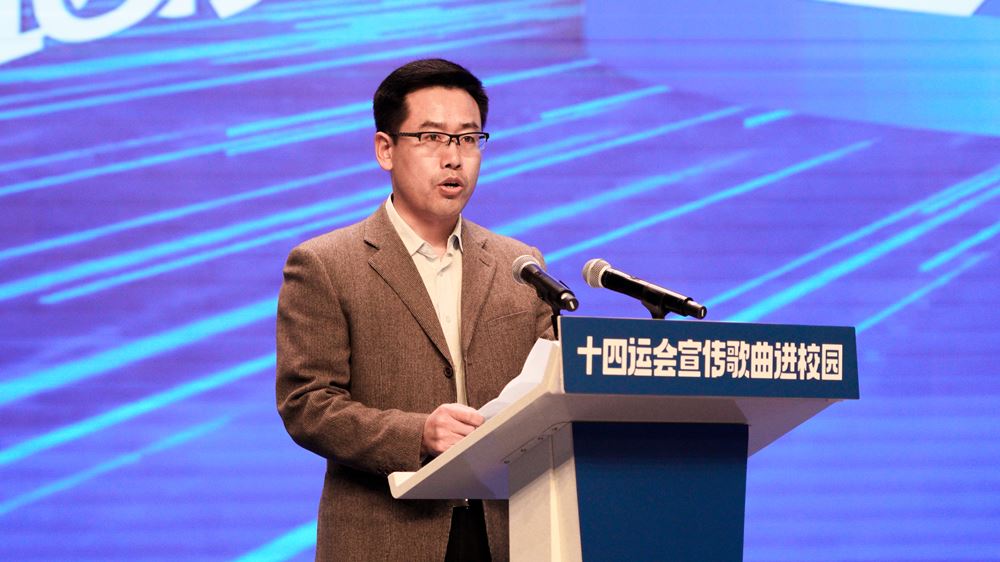 十四运会和残特奥会组委会新闻宣传部综合协调处处长牛小奇讲话指出此次歌曲进校园活动的重要意义,并希望陕服和其他各高校的学生能够积极参与到活动中来。