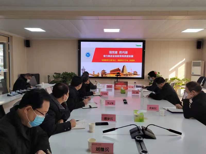 省委教育工委书记、省教育厅厅长刘建林作了题为“强党建、抓内涵,奋力推进全省教育高质量发展”的工作报告,省政协副主席、省教育厅副厅长高岭传达有关批示和会议精神,省委教育工委副书记陈乃霞主持会议。在会上,西安市教育局、安康市教育体育局、西安交通大学,西安建筑科技大学,陕西铁路工程职业技术学院等五家单位作了交流发言。