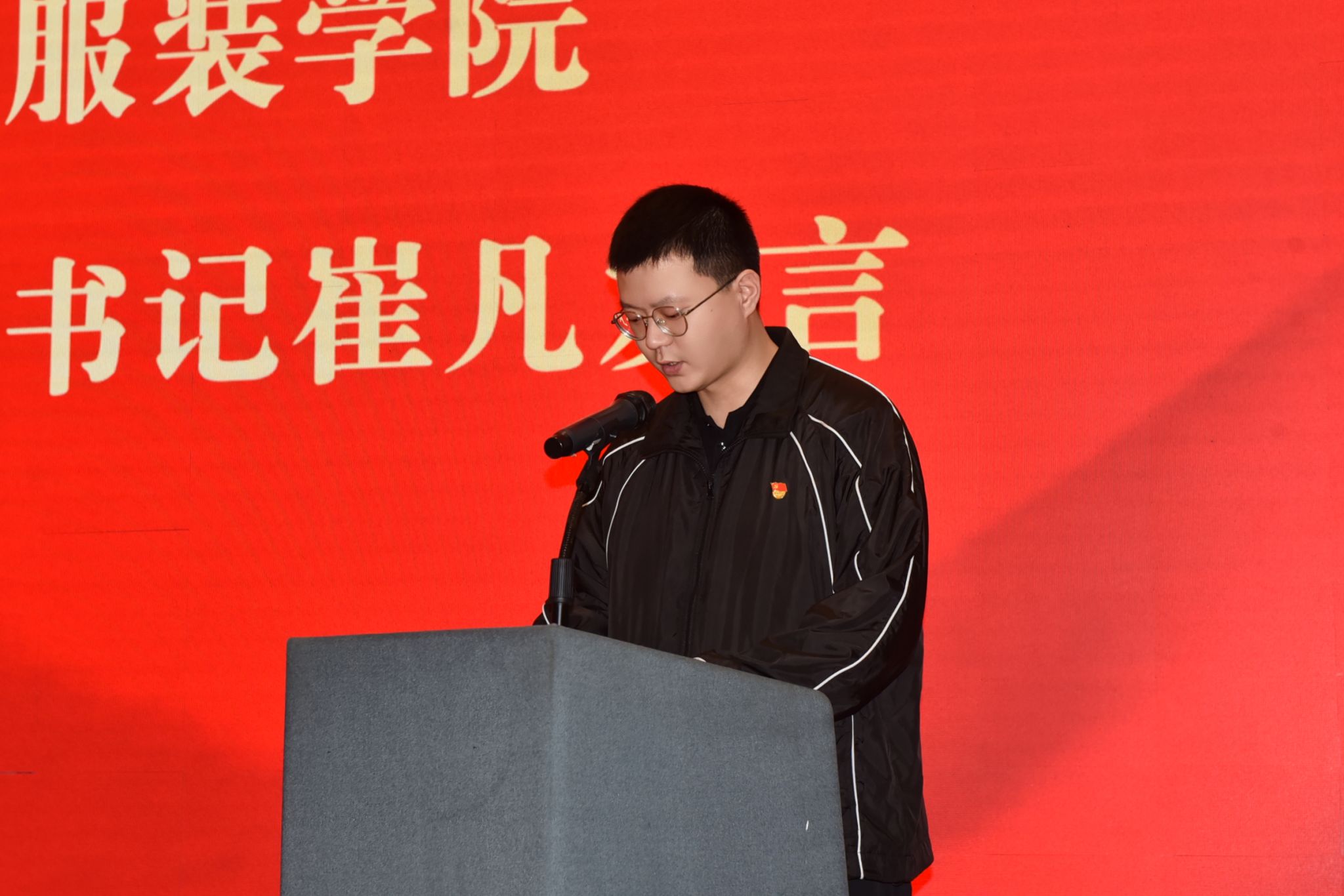 新接收预备党员代表、环境艺术设计专业2301班杨智勇发言,表示“将用实际行动践行入党誓言,履行党员义务,时时处处以党员的标准严格要求自己,争做合格党员”。服装学院学生第一党支部书记兼本期党校班主任崔凡发言,对预备党员表示祝贺和欢迎,并对参加党校第44期入党积极分子培训的学员寄予期望。