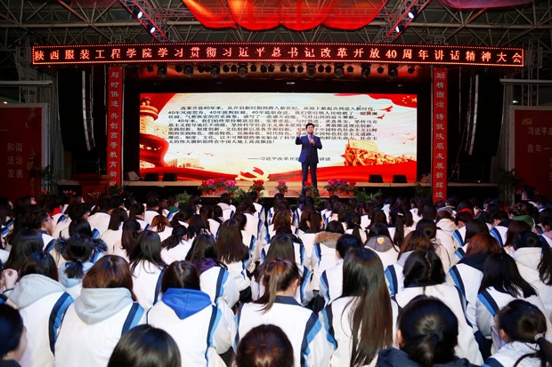 在其他大会上,校领导李宗领、艺术设计学院主持工作的副院长时晓楠、教师代表、经济管理学院办公室主任陈力军也分别讲话,畅谈改革开放四十年取得的丰功伟绩,回顾陕西服装工程学院25年来顺应改革开放大潮创立发展的历程。