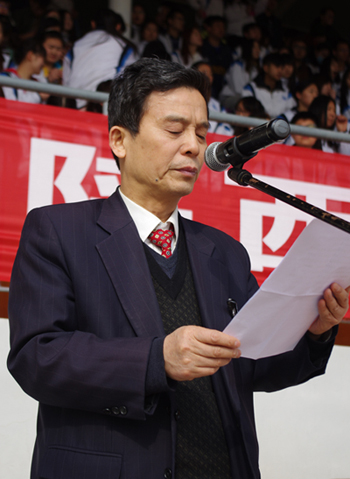 奏国歌后,温小郑副院长致开幕词。他代表学院向本届田径运动的隆重召开表示热烈的祝贺!向为大会服务的所有工作人员表示衷心的感谢!向全体裁判员、教练员、运动员表示亲切的问候。他说:“随着社会进步和文明的发展,体育的地位和使命也在不断变化,体育的功能和价值也在不断地走向成熟和完善。这此运动会是对我校大学生体育运动水平的一次检阅,还担负着为全省大学生运动会选拔选手的重任。”他说:“体育是力量的角逐,体育是智慧的较量,体育是美丽的展示。我们深知运动场是上的每一项奖励,都是运动员身体素质和顽强毅力的结晶,是团队精神、协作精神、奉献精神的具体体现。希望全体运动员以奥运精神为榜样,以饱满的激情,昂扬的斗志,勇于拼搏的信念,团结向上的精神投入到本届运动会中。在运动场上赛出成绩,赛出水平,赛出新风尚!”