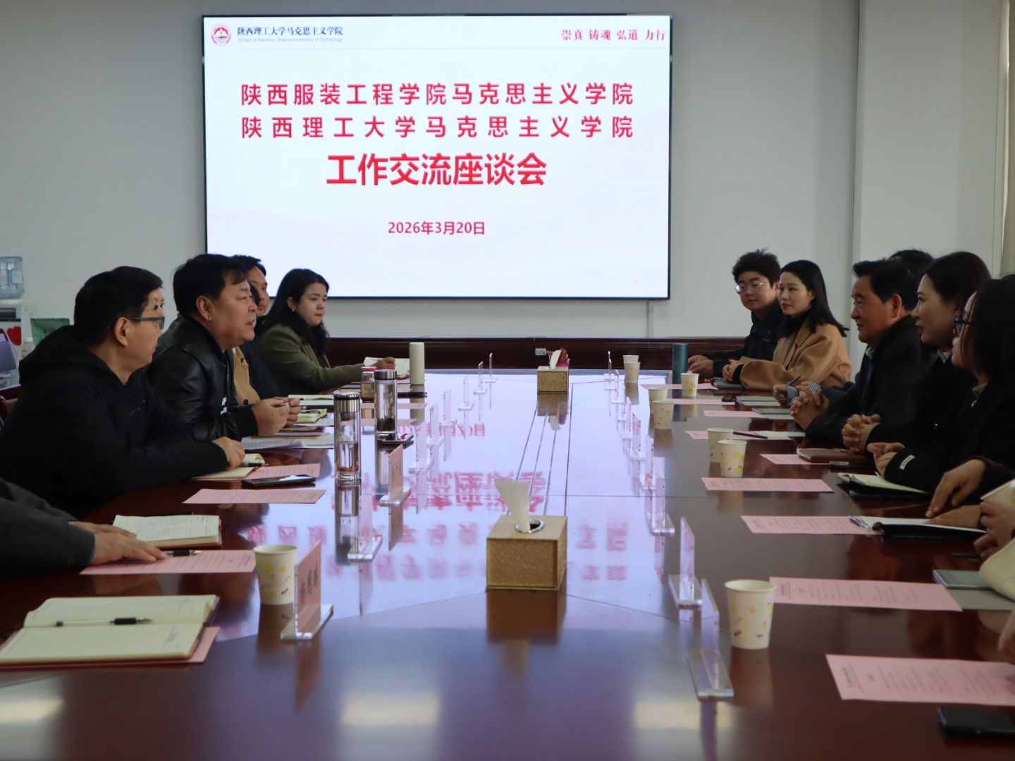 3 月 20 日下午,双方在陕西理工大学马克思主义学院举行专题座谈交流会。会议围绕资源共享、优势互补、协同发展的合作共识展开深度探讨。